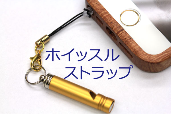 ホイッスル ストラップ 素材・・・・アルミ(全6色) ピンク/レッド/シルバー/ゴールド/ブラック/ブルー 直径・・・・8mm 長さ・・・・約41mm 二重カン・カニカンストッラップ付き ストラップの色は黒のみ 強く吹くとしっかりとした音が出ます。