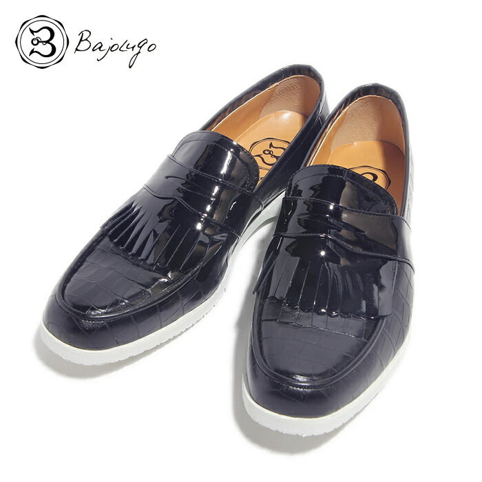 BajoLugo バジョルゴ おとこのブランドHEROES 掲載 シューズ スニーカー 靴 ローファー デッキ ドライビング クロコダイル エナメル ブラック 黒 MENS メンズ 送料無料